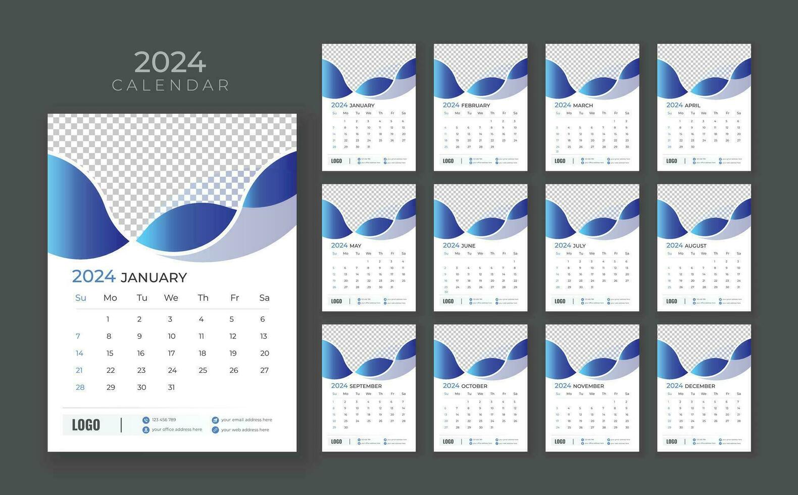 Source : www.vecteezy.comA3 11.7×16.5 2024 CALENDAR PSD Template Sunday Start